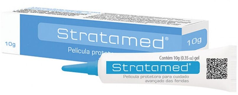 Gel de silicone flexível para tratamento de feridas abertas. Quando usado conforme indicação, Stratamed seca formando uma película protetora, permeável à gases e à prova d’água, que hidrata e protege as áreas lesadas da pele e feridas aberta da invasão química e microbiana.